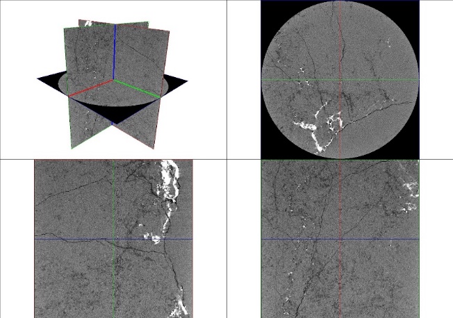 微米CT扫描实验室 一、实验室简介 本实验室隶属于yl7703永利集团实验中心。主要功能是:岩石微观结构计算机断层扫描图像采集。实验室位于综合实验楼B106。 二、仪器设备 微纳米双射线管岩心CT扫描系统 仪器设备(型号):微纳米双射线管CT扫描系统V|Tome|X S180 & 240 品 牌:德国 GE 三、主要参数 (一)微纳米双射线管CT扫描系统 微纳米双射线管CT扫描系统由射线管、样品转台和探测器三大核心部分构成;根据样品尺寸调整扫描电压、电流、扫描张数、暴光时间等参数来完成样品测试。 表1. 微纳米CT基本性能参数 参数 测试范围 样品大小 1-260mm(样品直径) 扫描电压 微米管:10-240 kV 扫描电流 微米管:5-2800µA 扫描张数 1400-1800 暴光时间 500-2000ms (四)成果介绍 对扫描图像进行重构后,得到微样本三维灰度图像。 由于CT图像的灰度值反映的是岩石内部物质的相对密度,因此CT图像中明亮的部分认为是高密度物质,而深黑部分则认为是孔隙结构。通过ImageJ、AVIZO等软件对灰度图像进行区域选取、降噪处理,将图像分割与后处理可提取出孔隙结构模型、孔隙度、孔隙半径、喉道半径、配位数等参数。 某样品微米CT扫描图像 某样品微米CT扫描剖面图(三维切片,俯视图、XZ方向、YX方向) 某样品二值分割图像(黑色-孔隙;白色-颗粒) 某样品三维孔隙网络模型 某样品孔喉结构特征 四、实验室责任人 韩登林 联系电话:18601309981 五、实验预约流程 需与实验室责任人确定样品类型、数量、测试时间后,下载填写“分析测试申请表”,在开展实验当天提交纸质申请表。样品要求:圆柱状岩石样品,规格2.5cm(φ)*4cm(L)。