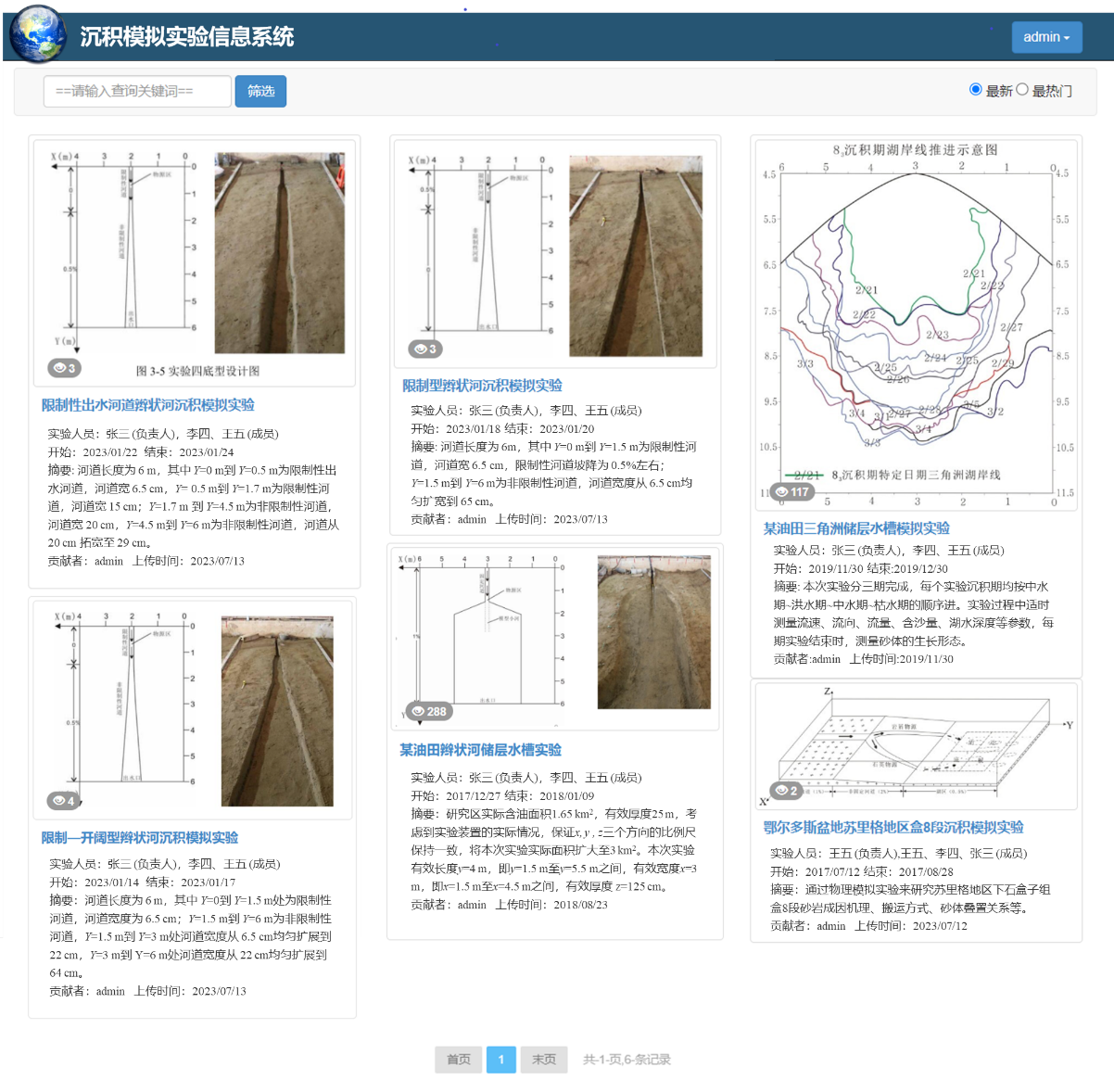 科普基地从建设到开放使用过程中一直坚持加强网络媒体平台的同步建设和公共科普信息宣传与服务。结合我院网站建设和我院地学类在线开放课程建设等工作,开展了中国地层标本长廊、湖泊沉积模拟实验、长江三峡标本长廊的等一系列数字化信息资源的制作与在线发布工作。 (1)构建了中国南北地层标本长廊网上实景三维模型 2023年,新建“中国地层标本长廊”课间地学实习基地,占地1350平方米,极大地丰富了我校地质课间实习资源,为了加强长廊的宣传推广,我们采用无人机倾斜摄影基础构建了长廊的实景三维模型(图51),并在网上发布。公众可足不出户地多层次多角度在线观察地质长廊的三维模型,达到身临其境的效果。技术上,采用大疆 精灵 4Pro无人机和无人机飞行控制软件和Context Capture建模软件构建了不同详细程度的三维模型,形成了数字长廊的三维数据体,发布成网络开放格式3DTiles,能够达到在线高效显示的目的。 中国地层标本长廊三维模型 (2)构建了长江三峡地层标本长廊网上展示动画 自20世纪初以来,三峡地区就已成为我国地质学家开展地层学、古生物学、沉积学等多种学科研究的重要场所;它同时也是yl7703永利集团地球科学院系沿用多年的地层学、沉积学野外实习基地和开展过多项科研项目的区域,目前已积累了大量地质资料和研究成果。为将这些丰富的资料和成果转化为教学资源,抢救性地保护三峡地质资源,在中国石油天然气集团公司的资助下,设立了《长江三峡剖面微缩工程》项目,在yl7703永利集团校园内建立了三峡地层标本长廊(图52)校内实习基地。为了将其该项目公众宣传,同时为了保证了地层标本的连续性和完整性,弥补了长廊标本的密度有限、且难以陈列易风化破碎的标本等问题,我们采用Flash动画技术制作了三峡长廊的动画视频集成了每一块标本的高清照片,公众可通过网站(图53)在线观察地质长廊的标本照片及其文字描述,学习相关地质知识。 长江三峡标本长廊 长江三峡标本长廊网络媒体 /cjysx/sjjxtj/zjsxbbzl.htm (3)建设了湖泊沉积模拟实验在线开放信息系统 面向湖泊沉积模拟实验大量实验数据资料的管理、分享和分析需求,提出B/S模式的沉积模拟实验信息系统(图54-图56),实现了沉积模拟实验的实验设计方案、实验观测数据、实验结果等信息的集成管理、高效检索和可视化分析等功能,从而为沉积模拟实验的网上信息化管理与分析应用提供可行方案。实验管理人员和大众可通过系统轻松完成实验项目检索、实验详情浏览、砂体测量数据的统计分析等工作。 实验相册浏览 系统首页(实验项目检索目录) 实验观测数据统计分析 同时,基地结合yl7703永利集团主页宣传工作,围绕与科普基地相关的各类活动开展了大量同步的在线宣传报道工作(图57-图59)。例如,面向社会公众开放的“实验室开放日”活动,面向全校大学生开展的“地学实践竞赛”活动,面向蔡甸姚家林小学开展的大学生支教活动等。这些宣传报道将科普基地广泛地推荐给社会公众,起到了良好的辐射效应。 举行科普活动 举行科普活动 举行科普活动