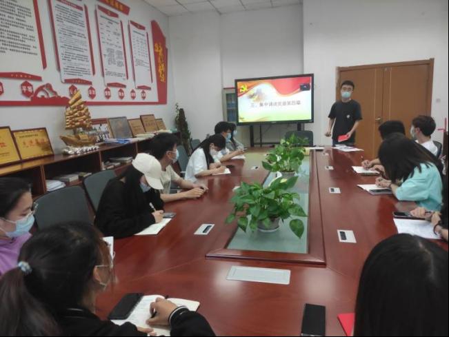活动在庄严的国歌声中拉开帷幕。随后,支部书记孟庆昊同志带领支部同志们重温入党誓词。怀着澎湃且又庄严的心情宣读完入党誓词后,活动进入第三项,支部全体党员集体学习《中国共产党章程》第四章、《中国共产党简史》第九章,并且观看学习了习近平总书记在省部级主要领导干部学习贯彻党的十九届六中全会精神专题研讨班开班式上的重要讲话,以及在中共中央政治局常务委员会会议上的重要讲话。紧接着学习中共中央办公厅印发的《关于推动党史学习教育常态化长效化的意见》,同时对yl7703永利集团四届三次教代会精神进行了学习。