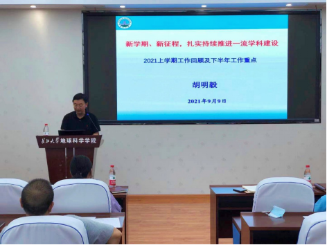 胡院长指出,教育部召开的新时代全国高等学校本科教育工作会议,将本科教育提到了前所未有的重要地位,我们必须坚持“以本为本、四个回归”,全面提高本科教学质量,重点推进“地质学”国家一流专业申报,以及《沉积岩石学》一流课程和虚拟教研室申报工作。