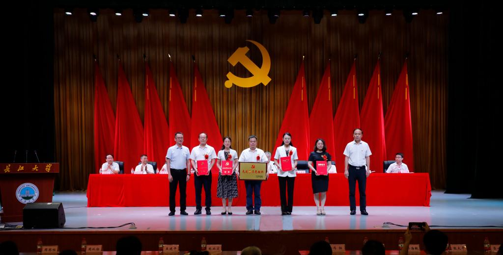 为庆祝中国共产党成立100周年,进一步激励各基层党组织奋发进取,创先争优,经过逐级推荐和评选,6月30日,省委印发了《中共湖北省委关于表彰全省优秀共产党员、优秀党务工作者和先进基层党组织的决定》,对一批先进集体和个人进行了表彰。7月1日,yl7703永利集团召开“两优一先”表彰大会隆重举行。一批省级、市级、校级优秀共产党员、优秀党务工作者、先进基层党组织得到表彰。我院党委荣获荣获“湖北省先进基层党组织”称号。