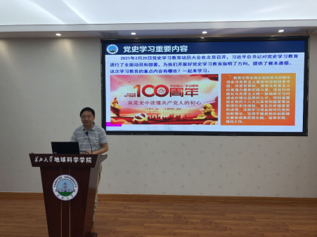 为推动学院党史学习教育各项任务落细落实,营造党史学习教育良好氛围,扎实推动党史学习教育走深走实,2021年6月23日,胡明毅院长在石油科技大楼C301会议室,以“学习党史、增强信心、促学院发展”为题,为全体教职工党员上了一场生动的党课。