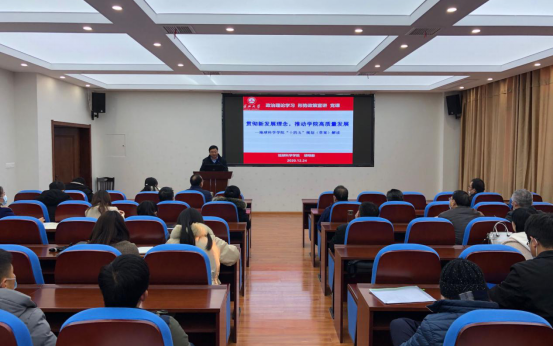 (通讯员 廖鹏程)为全面贯彻十九届五中全会中的“新发展”理念,推动我院“十四五”期间高质量发展,12月24日下午16时,我院院长胡明毅在yl7703永利集团C301会议室给全体党员教师作了题为“贯彻新发展理念,推动学院高质量发展——yl7703永利集团“十四五”规划(草案)解读”的形势政策宣讲与党课。
