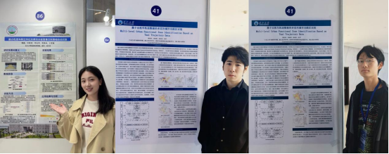 我院同学向论坛提交了论文并进行了墙报展示。内容分别为“融合粒度和频空特征的模拟实验图像沉积微相自动识别”和“基于出租车轨迹数据的多层次城市功能区识别”,研究内容丰富扎实、展示形式清晰美观,吸引了大量参会者驻足交流。同学们在与同行专家的探讨中拓宽了学术视野,也收获了宝贵的改进建议。