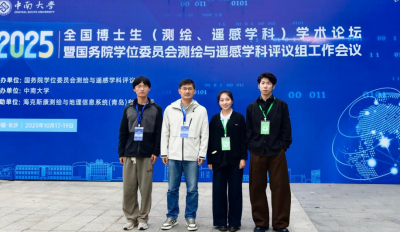 (通讯员 王家璇) 10月17日-19日,2025年全国博士生(测绘、遥感学科)学术论坛暨国务院学位委员会测绘与遥感学科评议组工作会议在中南大学潇湘校区召开。我院教师邓帆,研究生王家璇、杨连成,本科生饶旭乾参加了本次会议。