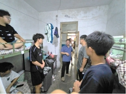 在地科系主任刘彬,支部书记赵少卿等老师的陪同下,江山副院长首先走访了学生宿舍,与学生就住宿条件、生活习惯、实习收获等方面进行了深入交流。他寄语同学们要高度重视地质实习,锤炼扎实的野外地质技能,培养地质时空演化思维,将所学专业与国家重大战略需求相结合,努力奋斗。江山副院长还以自身1998年在柳江的实习经历劝勉同学们要把实习当作重要的实践锻炼,努力培养吃苦耐劳、乐观向上精神品质,为将来投身地质类相关工作或科研打下坚实基础。
