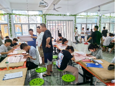 随后,江山副院长来到基地食堂。地质学专业的同学们正在绘制实测地质剖面图,江山副院长随手检查同学们的作业,像“老学长”一样向学弟学妹们介绍了自己当年在柳江的野外实习经历和室内地质绘图的注意事项,寄语同学们认认真真打基础、扎扎实实做工作。