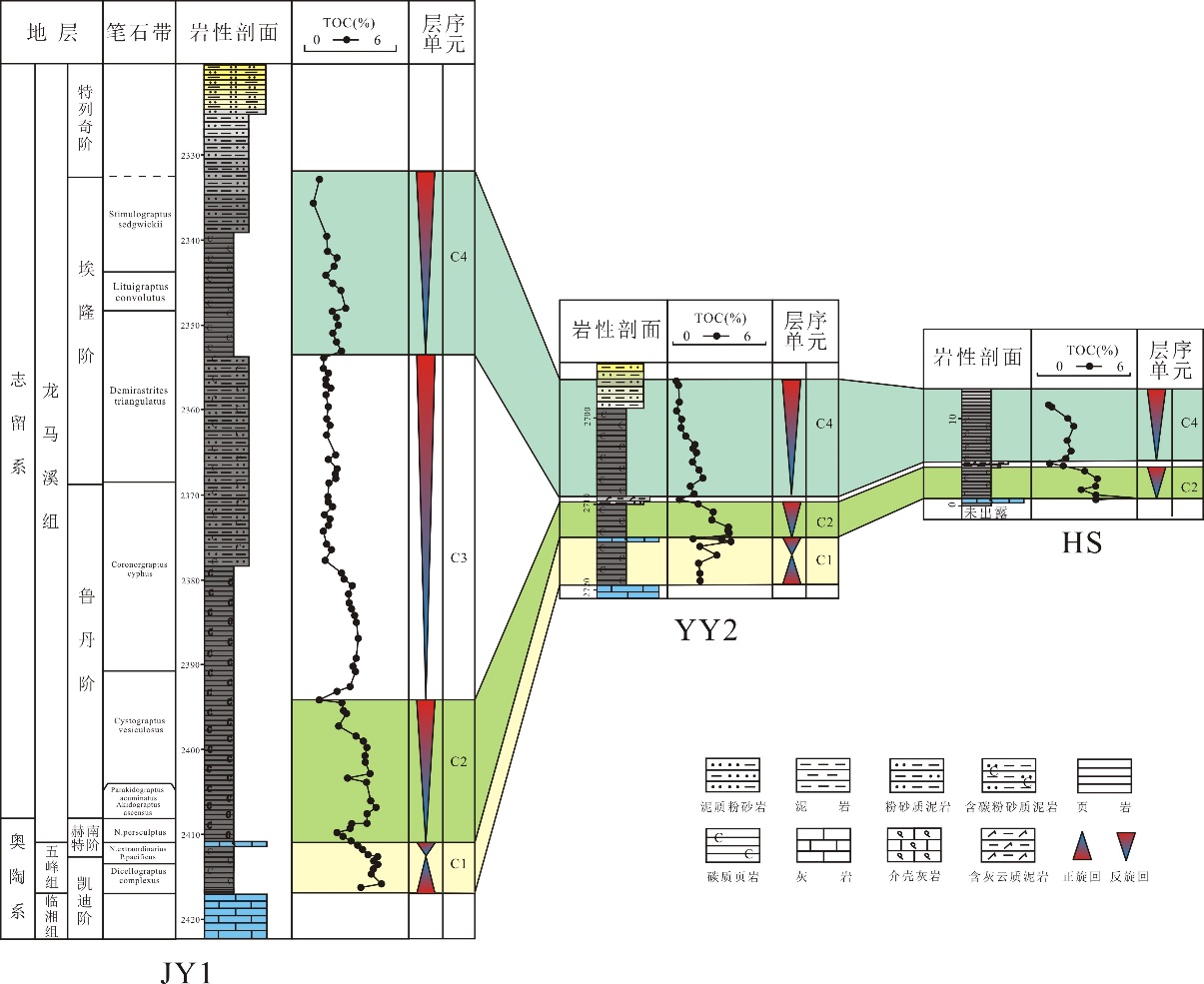 图1 川东与鄂西地区五峰组—龙马溪组黑色岩系沉积序列及旋回特征