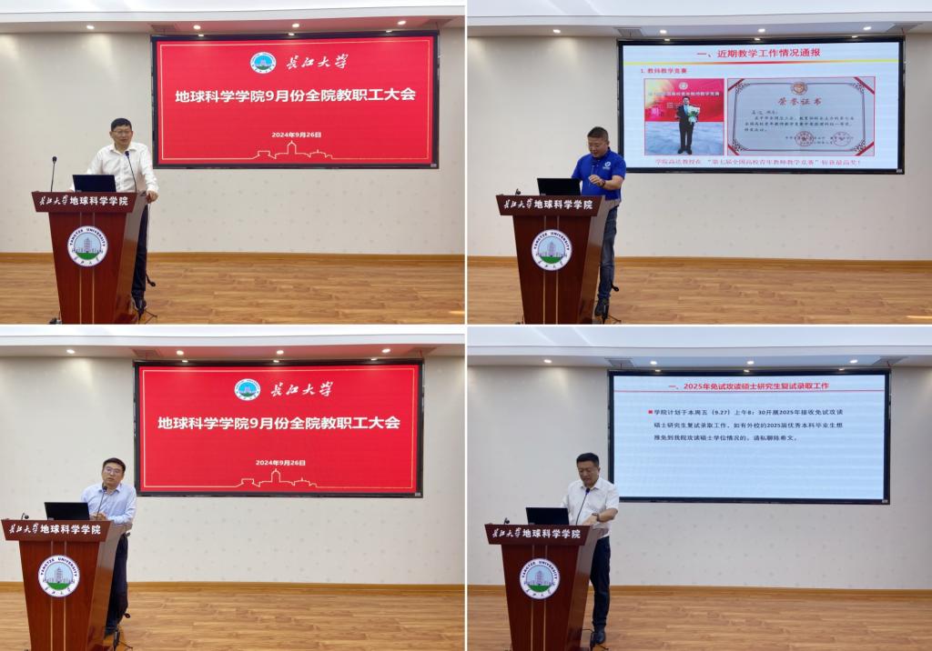 副院长江山对湖北省自然科学基金申报、南方复杂页岩油气地质与开发湖北省重点实验室2024年度开放基金申报等工作进行了安排和部署,传达学校关于聘期考核中科研工作量等的有关工作指导意见,并对目前科研经费到账、科研成果等情况进行了通报。