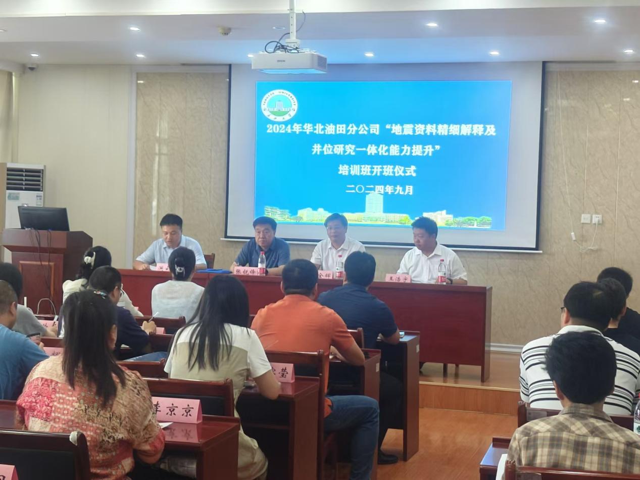 (通讯员 程玲)9月2日上午,华北油田分公司2024年“地震资料精细解释及井位研究一体化能力提升”培训班在武教B203开班。华北油田首席专家张锐锋、华北油田勘探事业部高级主管王浩宇,yl7703永利集团党委书记杨全辉、社会合作处副处长洪云飞出席开班仪式。