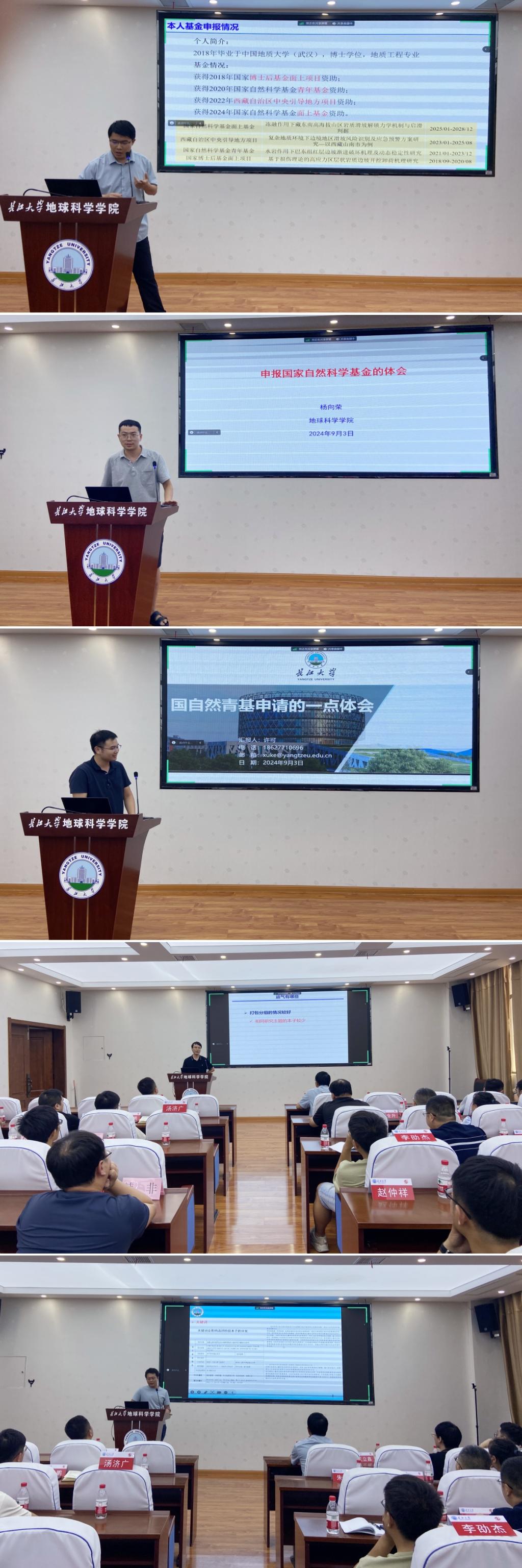 会议第二阶段,学院2024年获批国自然基金项目的教师代表温韬、杨向荣、许可、薛阳和王立鑫老师等作申报经验总结与分享报告,从项目思路、选题、立项依据、撰写细节、附件准备、成果积累等多个角度阐述,为相关教师提供了经验和参考,参会教师表示受益匪浅。