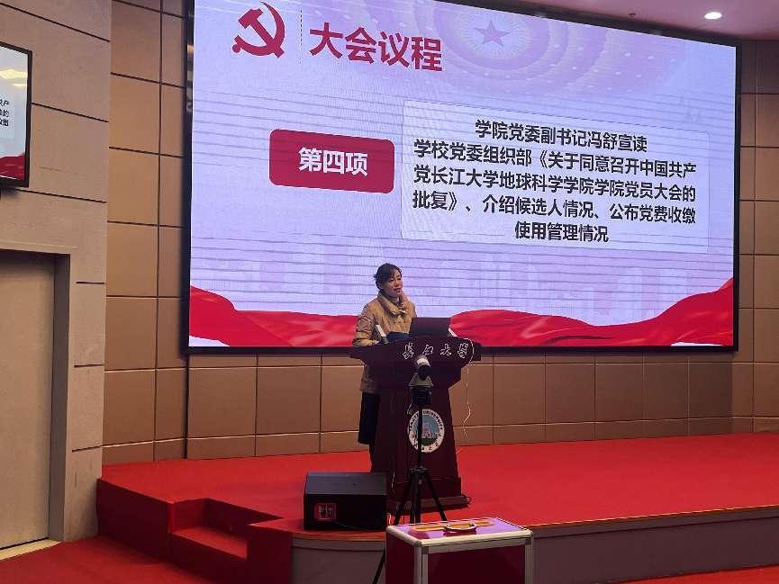 党委副书记冯舒同志宣读了校党委《关于同意召开yl7703永利集团党员大会进行换届选举的批复》文件、介绍了候选人情况并公布了四年来学院党费收缴、管理和使用情况。全体党员审议并举手表决通过了选举办法、监票人、计票人建议名单。
