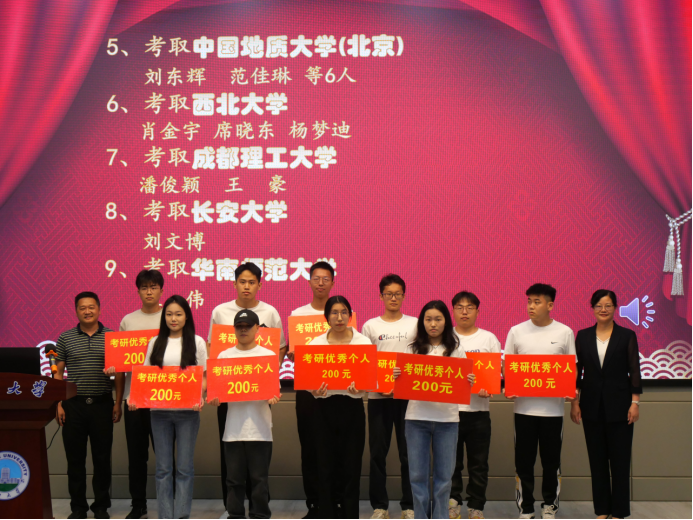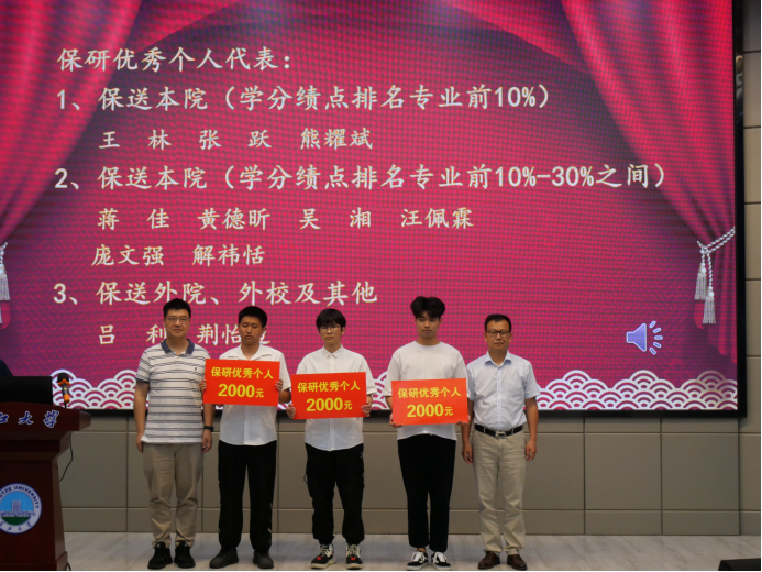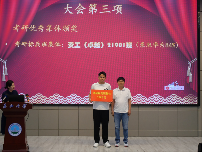 会议在隆重的国歌声中拉开帷幕。副院长李强宣读《yl7703永利集团2023年考研表彰文件》,1个考研标兵班级、6个标兵宿舍、2个标兵个人,和43名优秀个人依次上台领奖。