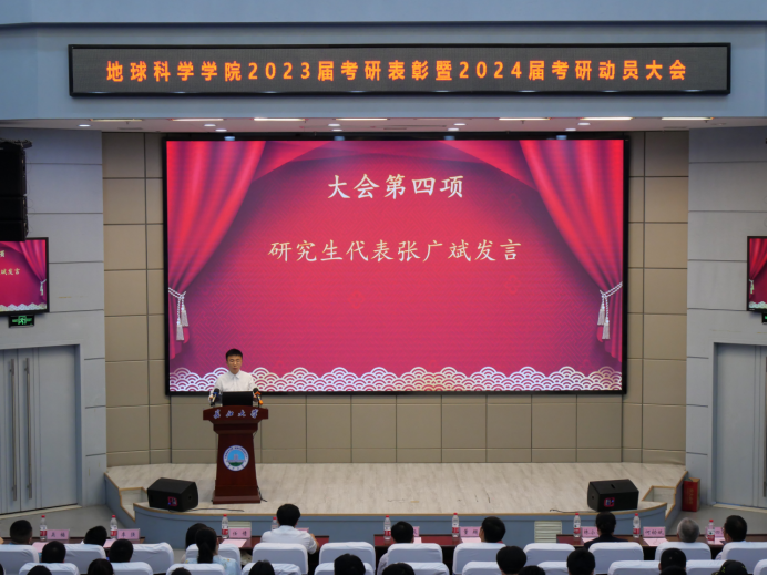 2020级研究生代表张广斌发言,他认为在长大读研是人生最正确的选择之一,导师和学院指导与培养让他硕果累累。导师代表苏奥博士鼓励大家:“考研的路上,可能会遇到各种各样的困难和挑战。只要有梦想有决心,就一定会战胜这些困难和挑战。”副院长吴楠教授为同学们分析了2024年考研局势,勉励大家要更加自律、进一步明确发展方向,做好时间规划。