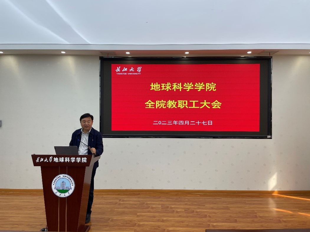 (通讯员 尚成)奋楫再出发。为进一步推动学院高质量发展,4月28日下午,我院在石油科技大楼C301室召开了全院教职工大会。会议对学院近期重点工作进行了通报和部署,会议由院长胡明毅主持。