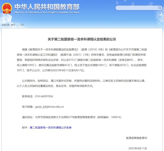 (通讯员 罗进雄)4月11日,教育部公示了第二批国家级一流本科课程的认定结果,拟认定5751门课程为第二批国家级一流本科课程,我院申报的《沉积岩石学》线下一流课程榜上有名。