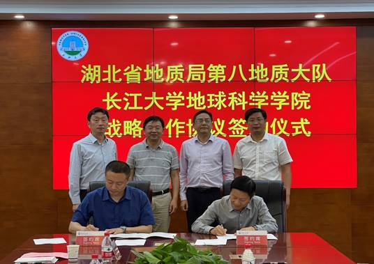 (通讯员 张严)5月27日下午,湖北省地质局第八地质大队党委书记孙祥民一行受邀到我院洽谈交流,并签订校企战略合作协议。院长胡明毅、院党委书记杨全辉,副院长李强、吴楠、韩登林、党委副书记任倩等院领导以及地质系、石油系、地信系相关负责人与教师代表参加洽谈交流,会议由党委书记杨全辉主持。