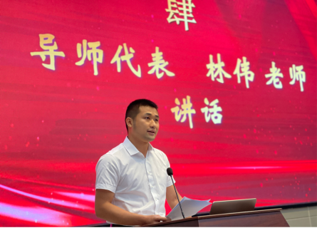 导师代表林伟在讲话中鼓励同学们“把握当下,做对选择;踏实勤奋,打好基础;明确目标,锲而不舍地迎难而上。”