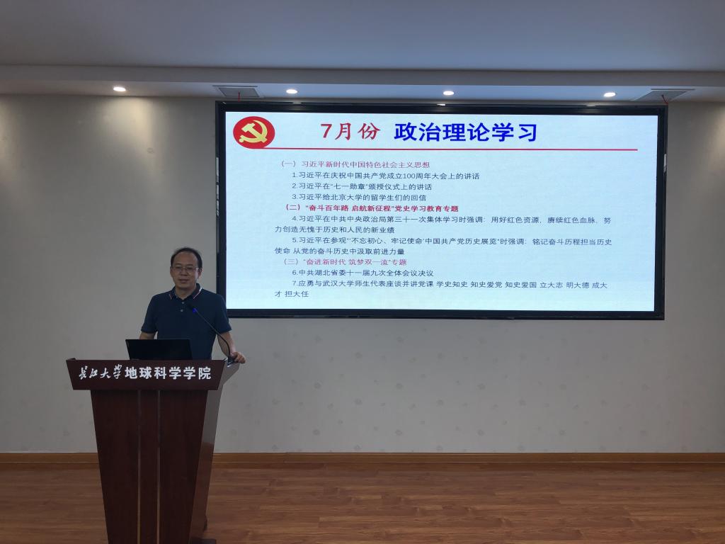 政治理论学习分为“习近平新时代中国特色社会主义思想”、“奋进百年路,启航新征程”党史学习、“奋进新时代、逐梦双一流”三个专题进行。党委书记江万哲带领全体教职工认真学习了《习近平在庆祝中国共产党成立100周年大会上的讲话》、《习近平在“七一勋章”颁奖仪式上的讲话》、《习近平给北京大学留学生们的回信》、《习近平在中共中央政治局第三十一次集中学习时的讲话》、《习近平在参观“不忘初心、牢记使命”中国共产党历史展览时的讲话》等。江书记还带领大家一起学习了《中共湖北省委十一届九次全体会议决议》的主要内容和精神,学习了应勇书记与武汉大学师生代表座谈时的讲话精神,要求大家学党史,立大志,明大德,成大才,担大任,努力成为堪当民族复兴重任的时代新人。