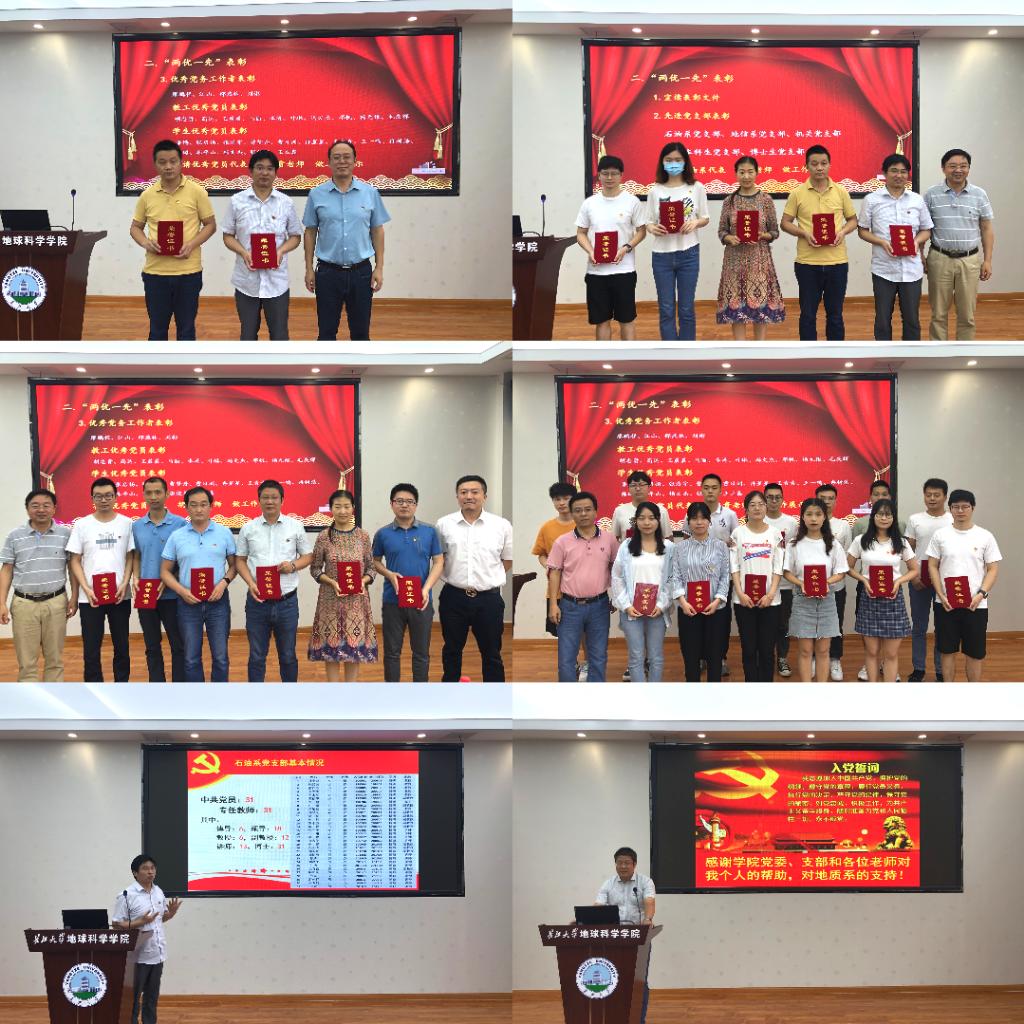 组织员郑秀才宣读“两优一先”表彰文件,学院领导为获奖者颁奖。石油系党支部等5个党支部荣获“先进党支部”称号,高达等24名师生荣获“优秀共产党员”称号;廖鹏程等4名同志荣获“优秀党务工作者”称号。 “优秀党员”荣誉获得者胡忠贵、“优秀党务工作者”荣誉获得者江山作了典型发言。