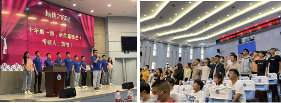 紧接着2022届各班学生代表、年级代表分别上台带领同学们做考研宣誓,嘹亮的声音,豪迈的气势,充分展现了我院2022届学生考研的壮志雄心。