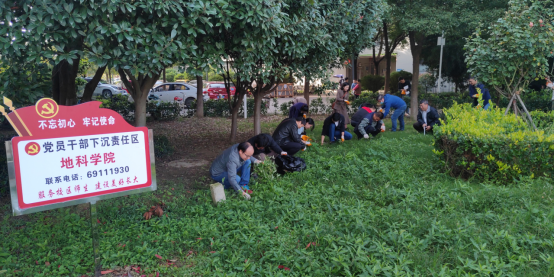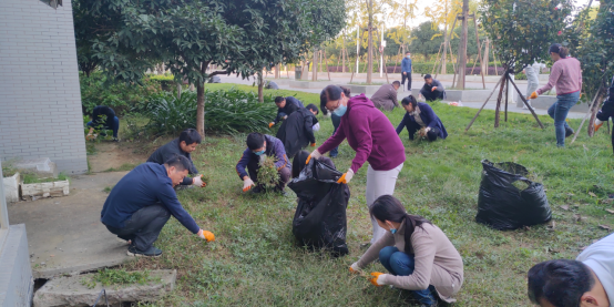 本次拔草护绿活动,不仅美化了武汉校区美丽的校园,更增强了我院党员干部的凝聚力,充分展示了我院党员教师在下沉工作中的责任与担当,发挥了先锋模范作用。据悉,我院党员干部在常态化的疫情防控期间,还积极投身到校园及华林公寓门禁值守、学生宿舍值守、学生心理疏导、学业辅导、新生报到、高湖社区志愿服务等一系列党员下沉工作。