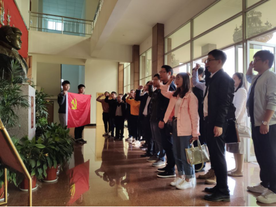 最后,参加此次学习实践活动的全体党员在黄继光英雄雕像与鲜艳的党旗前高举右手重温入党誓词,庄严的仪式对于每位宣誓者都是一次心灵的洗礼。