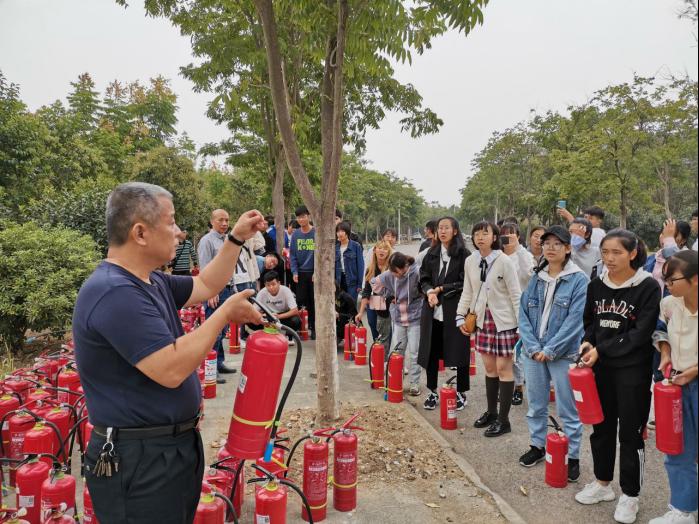 在消防演习前,校区安全保卫部部长路勇讲解了消防安全知识和灭火器的操作规范,以及在何时去使用灭火器,并提醒所有学生“生命重于一切,安全高于泰山”,指出灭火器只用于扑灭初期火灾,一旦出现重大火情,应立即逃生。