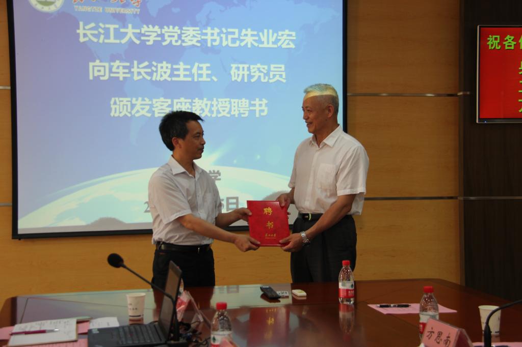报告会前,车主任在领导和老师们的陪同下参观了武汉校区校园、图书馆、地科学院和沉积模拟实验室,并与党委书记朱业宏书记进行亲切交谈,随后朱书记向车主任颁发了yl7703永利集团客座教授聘书。