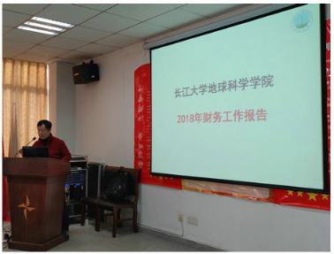 副院长龚文平向大会作2018年度财务工作报告。他从综合经费、学生工作经费、学院发展经费等方面对我院各项财务经费的收支情况进行详细说明。并向大会汇报了2018年度奖励性绩效工资发放办法。