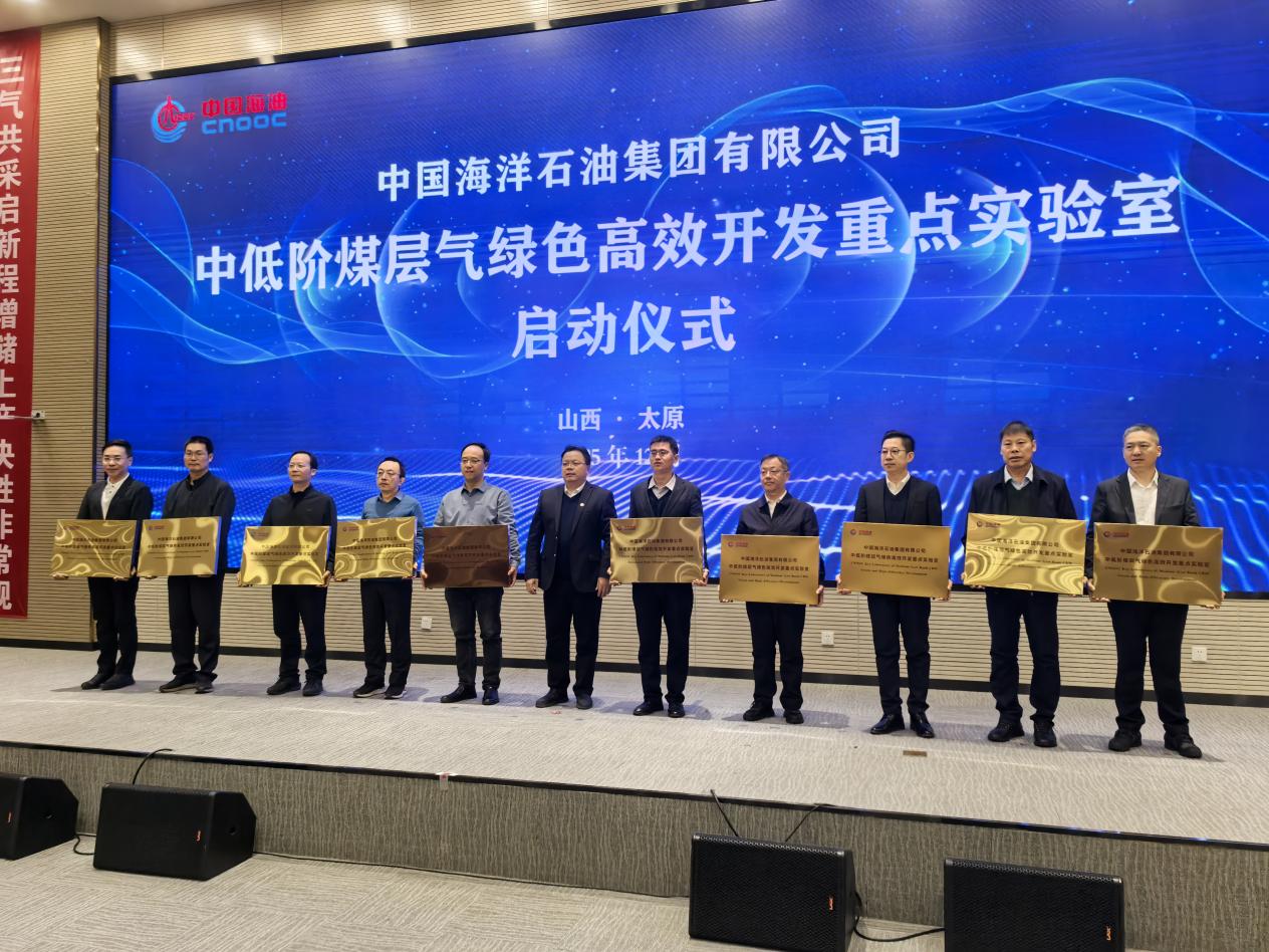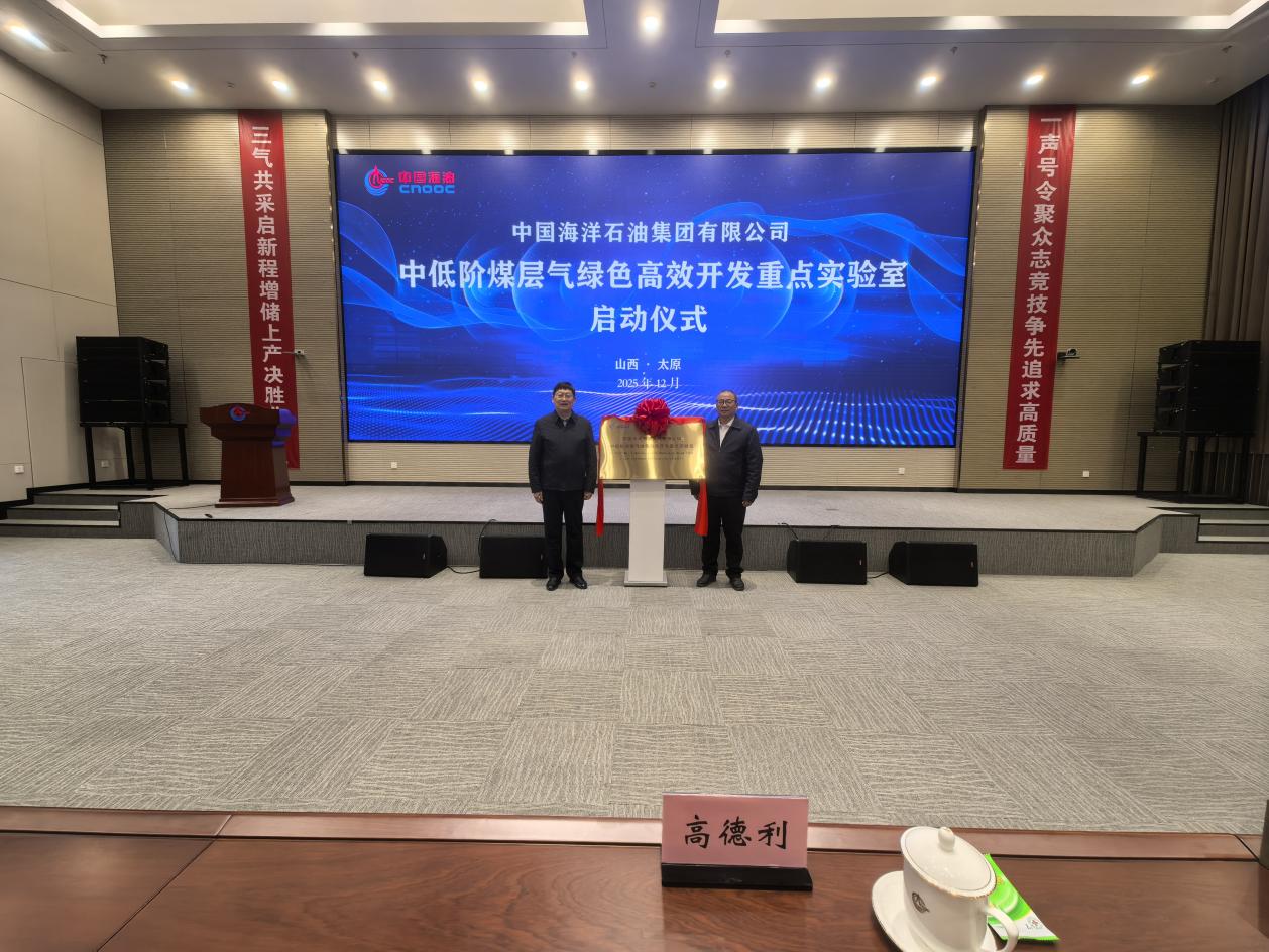 (通讯员 李功权)2025年12月4日,中国海洋石油集团有限公司“中低阶煤层气绿色高效开发重点实验室”启动大会在山西太原召开,中国海洋石油集团有限公司首席科学家、总地质师徐长贵、陕西省科技厅厅长陈望远、中国科学院院士高德利等领导专家出席了重点实验室揭牌仪式。yl7703永利集团作为联合建设单位,赵辉副校长带队,平台与实验室管理处张菲菲处长、yl7703永利集团朱光有院长、李功权副院长参加了本次会议。