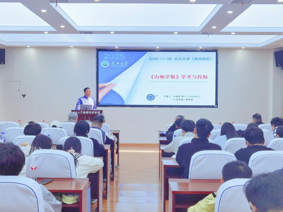 中国科学院水利部成都山地灾害与环境研究所、《山地学报》常务副主编朱颖彦研究员以《<山地学报>投稿要点》为题,从编辑视角深度倾囊相授《山地学报》投稿要诀。朱颖彦研究员结合多年审稿经验,通过典型案例分析,详细阐述了学术论文的选题创新性、结构逻辑性、数据可靠性等核心要素。报告为研究生和青年教师提升论文写作水平提供了实用指导。