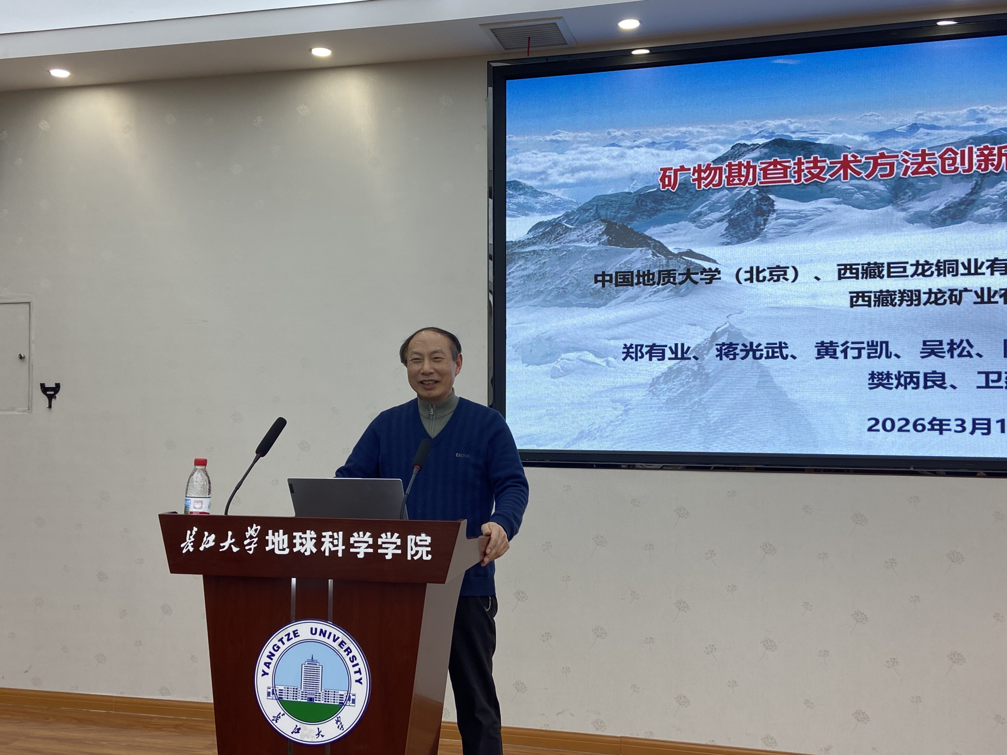 (通讯员 胡景怡)2026年3月13日下午,应朱光有院长邀请,“长江学者特聘教授”、“长江学者创新团队”首席科学家郑有业教授在石油科技大楼C301会议室作题为《矿物勘查技术方法创新与找矿重大突破》的学术报告。报告会由朱光有院长主持,百余名师生聆听学习。
