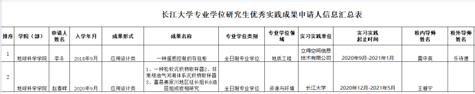 根据《关于开展“2021年yl7703永利集团专业学位研究生优秀实践成果”评选工作的通知》要求,我院积极组织学生开展了成果申报动员工作,经学生申请,我院审核,拟推荐成果2项,现对此予以公示。最终获奖情况以研究生院审定结果为准。公示时间为2021年5月28日至5月30日。公示期内如有任何异议,请与学科办联系。联系电话:027-69111109。