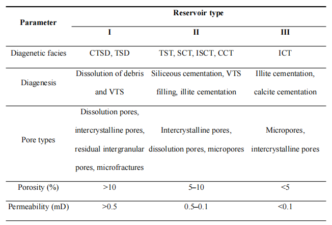 2.在火山凝灰质沉积成岩演化及其对孔隙结构的影响方面,研究识别出三种不同的VTS成岩演化序列。序列II和序列III经历了中期酸性流体对VTS、长石和早期钙质胶结物的溶蚀,显著改善了孔隙度。研究通过压汞曲线分析表明,以溶蚀作用为主的I类储层具有更大的孔喉半径和更好的孔喉连通性,而以硅质、钙质或伊利石强胶结为特征的II类和III类储层则表现为小孔喉、高排驱压力的特征,渗透率显著偏低。