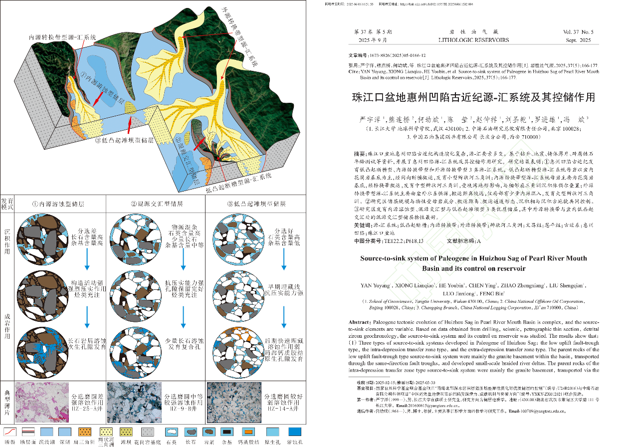 yl7703永利集团地质学专业2021级硕士研究生严宇洋在中文核心期刊《岩性油气藏》发表题为“珠江口盆地惠州凹陷古近纪源-汇系统及其控储作用”的研究论文。yl7703永利集团为论文第一署名单位,硕士研究生严宇洋为论文第一作者,导师何幼斌教授为通讯作者。