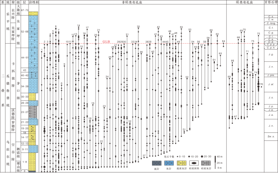 图1鄂西沿渡河剖面二叠纪有孔虫化石分布图