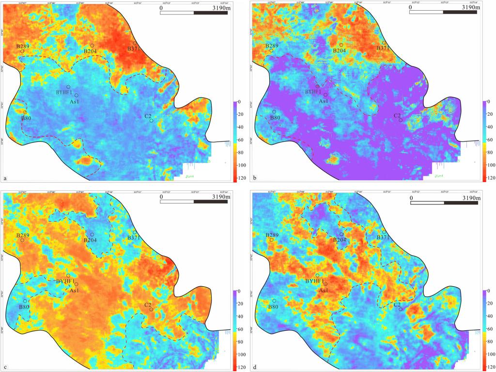 通过测井与地质数据的验证可以看出,基于地震属性的岩相分析方法所预测的泌阳凹陷Eh3段第五套页岩层的岩相平面分布成果较为可靠。证明均方根振幅(RMS)分析方法可有效预测新区(无论有无钻井)页岩岩相的时空分布特征。