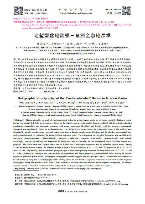 yl7703永利集团邹志友博士联合研究团队,在《科学技术与工程》期刊上发表了题为“地堑型盆地陆棚三角洲全息地层学”的研究文章。该研究聚焦于地堑型盆地陆棚三角洲的全息地层学特征,主要研究内容及成果如下: