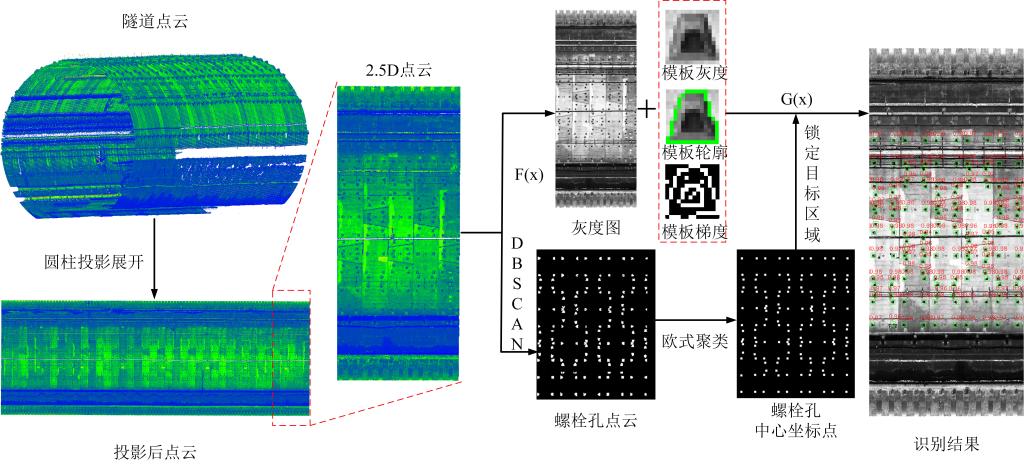 地科学院硕士生王少宁在《测绘通报》上发表论文提出一种基于多特征模板匹配的多源盾构隧道螺栓孔自动识别方法 地科学院硕士生王少宁在测绘领域期刊《测绘通报》上发表题为“多特征模板匹配的多源盾构隧道螺栓孔精准识别”的研究论文。 该研究主要针对盾构隧道激光扫描过程中螺栓孔因位置不一、姿态多样导致成像后目标形状不一的问题,以及盾构隧道内壁、渗漏水等对象因灰度值与目标较为相似对识别造成干扰的问题,本文提出了一种基于多特征模板匹配的多源盾构隧道螺栓孔自动识别方法(图1)。该方法将盾构隧道螺栓孔三维点云中心坐标用于锁定图像目标检测区域,利用螺栓孔灰度、形状以及梯度信息精准识别螺栓孔。在耗时相近的情况下,与同类方法相比,本文方法识别率提高了3.54%,识别精度提高了3.28%,最大像素偏差降低了4.68,平均偏差降低了1.35,具有更好的准确性和鲁棒性(图2)。 《测绘通报》(月刊)创刊于1955年,是由自然资源部主管、中国地图出版社有限公司主办、测绘出版社有限公司出版的反映我国测绘科技发展现状、推广测绘生产技术经验、指导全国测绘生产业务和服务自然资源监测的综合性、技术性刊物。包括大地测量、全球导航卫星系统(GNSS)、摄影测量、遥感(RS)、地图制图、地理信息系统(GIS)、工程测量、矿山测量、地籍测绘、海洋测绘等方面的新成果和新技术及其在生态环境保护、自然资源管理、土地、地质、矿产、水利、交通、电力、海洋等行业的应用情况。 论文链接: https://kns.cnki.net/kcms2/article/abstract?v=_uHp55J8LtDnqTFs1238SvN7StedWuSMfLaybDHWb52o-GTDY-4HAMGDxTuJmfJ6uaB3GToGIEhOJEaMzBUOpcb-oj2UT0HCX7ZN2cUf44ynqpFXcqpf3MKLvdpFbJ5u7HwVbvFDBcIIqycaA_jRTi47ru52AzzQ2o8l1Q7-Cp3KmT1k-RqSrQ==&uniplatform=NZKPT&language=CHS 图1 盾构隧道螺栓孔识别原理图 方法 a b c 相似度区间识别个数 时间(s) 识别率(%) 平均相似度(%) 识别精度 形状 灰度 梯度 锁定匹配区域 [0.6-0.7] (0.7-0.8] (0.8-0.9] (0.9-1] √ × × × 0 1 0 17 54 276 232 6.876 47.69 87.40 8.99 0.05 5.20 √ × × √ 0 1 0 110 246 458 391 4.325 99.26 84.33 4.13 0 3.98 √ √ × × 0.3 0.7 0 0 0 114 1028 3.905 94.07 93.41 7.74 0 4.17 √ √ × √ 0.3 0.7 0 0 0 0 1202 1.463 99.01 97.81 4.21 0 2.96 √ √ √ × 0.2 0.7 0.1 0 0 99 1053 10.721 94.89 95.15 5.69 0 3.07 √ √ √ √ 0.05 0.9 0.05 0 0 0 1199 5.247 98.76 98.79 2.83 0 1.52 文献[10] 1 0 0 0 5 21 1130 7.745 95.22 95.51 7.51 0 2.87 图2实验结果对比 图3 论文