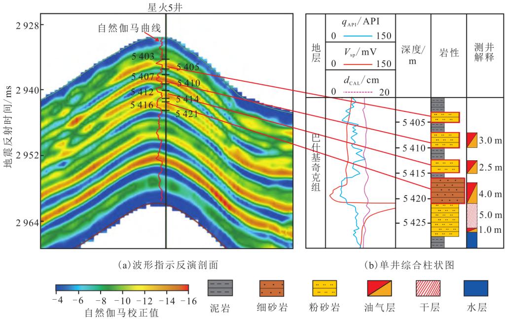 图1 星火5井自然伽马波形指示反演剖面与综合柱状图