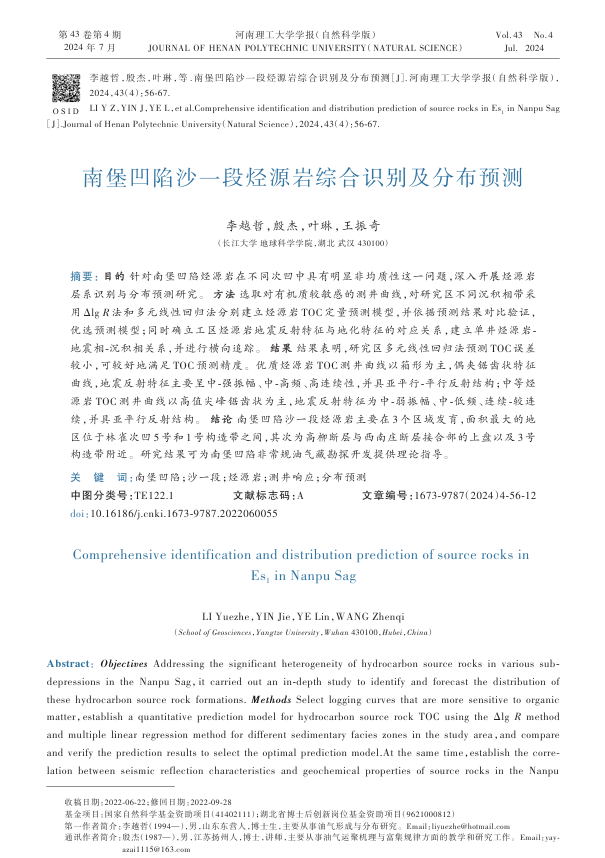 地科学院博士生李越哲在《河南理工大学学报(自然科学版)》上发表题为《南堡凹陷沙一段烃源岩综合识别及分布预测》的研究论文。yl7703永利集团为论文第一署名单位,博士生李越哲为论文第一作者,教师殷杰为通讯作者。