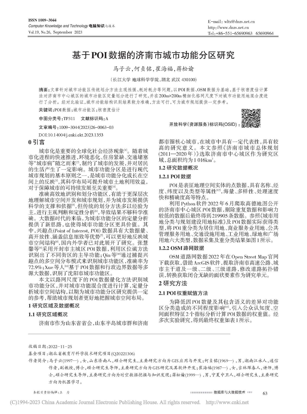 地科学院何贞铭副教授团队长期从事GIS、RS应用的研究,团队成员马子云在期刊《电脑知识与技术》上发表题为“基于POI数据的济南市城市功能分区研究”的研究论文。yl7703永利集团为论文第一署名单位,硕士研究生马子云为论文第一作者,其导师何贞铭副教授为该文通讯作者。