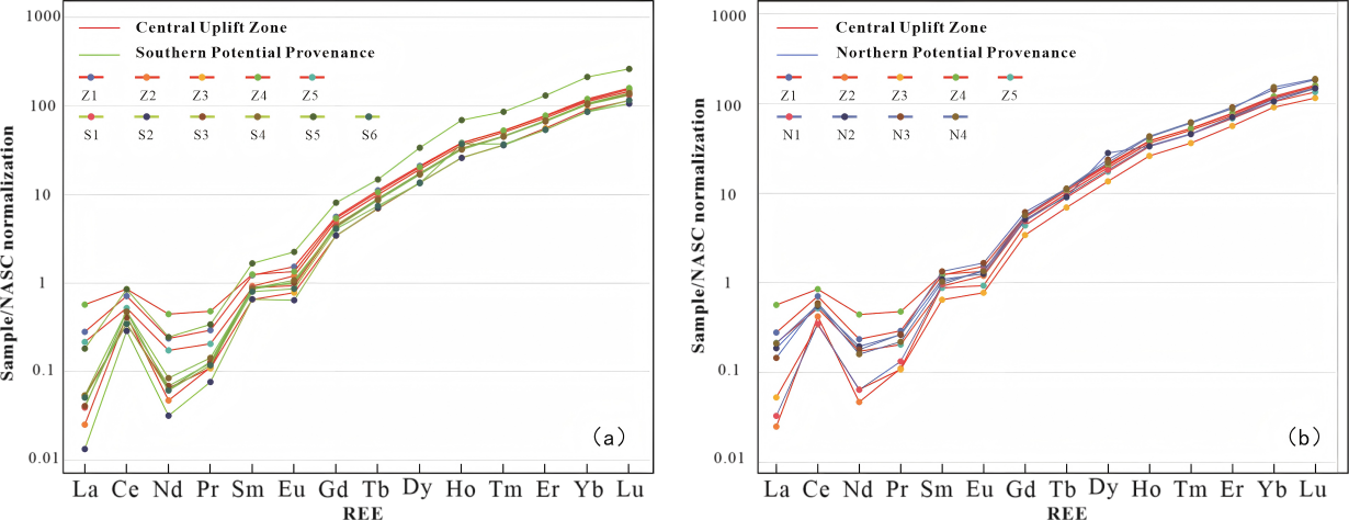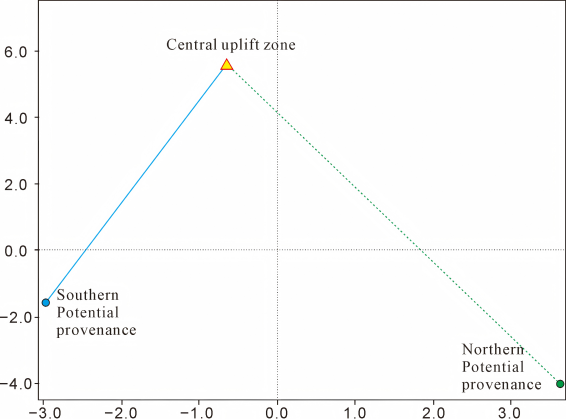 渤海湾盆地HHK凹陷古近系东营组广泛分布的滩坝沉积是中深层油气勘探的重要目标,受限于研究区缺少矿物学方法的直接证据资料,存在物源来源复杂,供给方向不明等问题。论文运用地球化学方法,将LA-ICP-MS锆石U-Pb定年与全岩稀土元素(REE)分析相结合,通过元素比值与分布模式研究示踪物源。分析表明:南部/北部物源区与中央隆起带碎屑锆石U-Pb年龄移动平均趋势线高度一致,且均呈现HREE(Gd-Lu)富集、LREE亏损的稀土元素配分模式,证明潜在物源区与沉积区地球化学特征的均一性;其差异性表现为南、北部潜在物源区与中央隆起碎屑锆石U-Pb年龄峰值差异,多维标度(MDS)空间定量显示南部物源区与中央隆起亲缘性(dij=4.472)较北部物源区(dij=6.708)更近。综合表明中央隆起带滩坝沉积为南北双物源体系,其中南部为主要物源,北部为次要物源。论文明确了HHK凹陷古近系东营组物源体系特征,为揭示砂体分布与沉积环境关系奠定了基础。