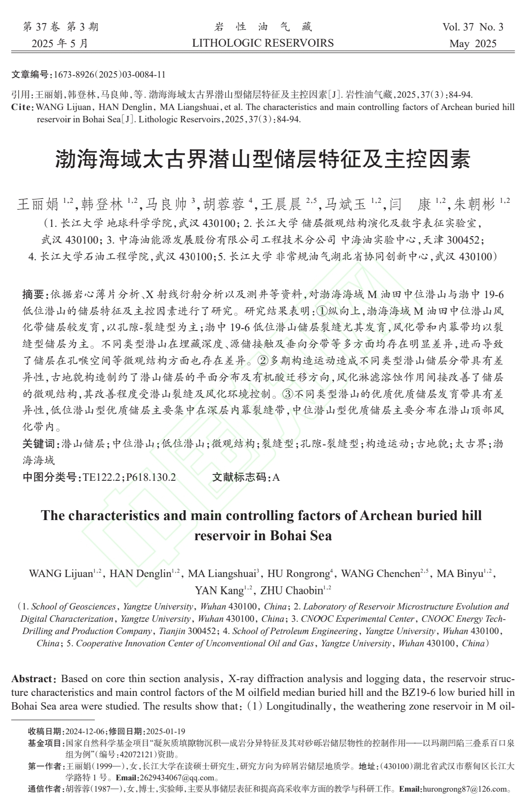 yl7703永利集团2023级地质学专业硕士生王丽娟在《岩性油气藏》上发表题为“渤海海域太古界潜山型储层特征及主控因素”的研究论文。yl7703永利集团为论文第一署名单位,硕士生王丽娟为论文第一作者。本研究成果依托yl7703永利集团储层微观结构演化及数字表征实验室完成,并得到国家自然科学基金项目(42072121)的资助。相关研究成果发表于该期刊第3期。