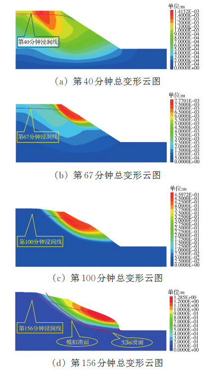 采用库水位骤降条件下库岸滑坡大型物理模型试验验证该方法的有效性(图3),模拟结果准确再现了库岸滑坡物理模型试验的牵引式多重滑面滑动破坏模式和最终滑面位置,为动水作用下库岸滑坡演化机理数值分析提供了一条可行途径。
