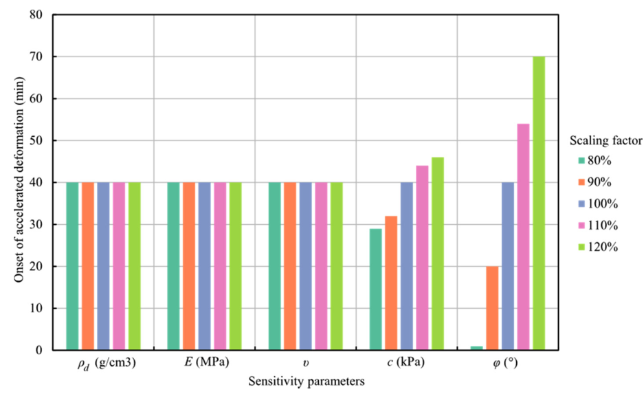 图3 滑坡启动时间对不同关键岩土参数的敏感性