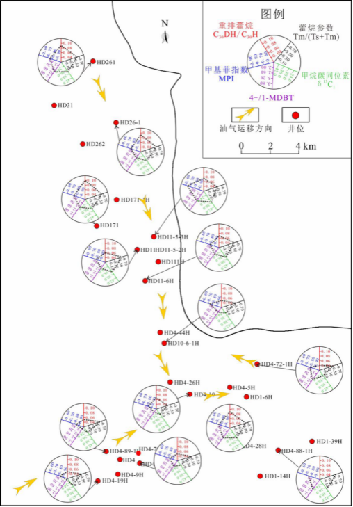 图1 东河砂岩油气运移路径地化多参数示踪