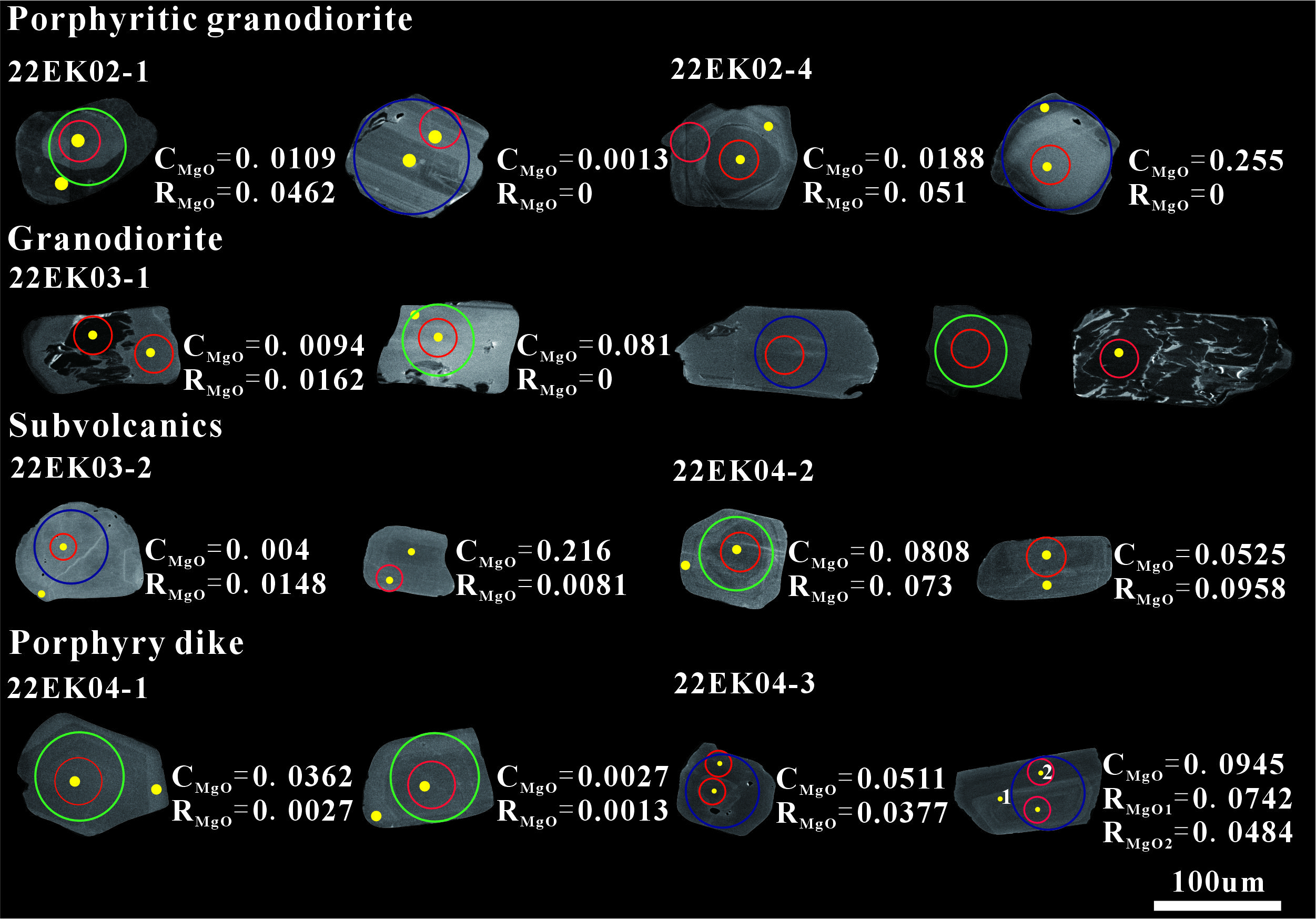 该项研究揭示,白石崖所有岩性的空间分布、锆石U-Pb年龄、磷灰石稀土元素模式及Sr-Nd同位素均一致,表明火山岩与侵入岩应该来自于同一深部的岩浆储库。白石崖火山-侵入杂岩体源于古老中元古代下地壳的部分熔融,并有幔源物质加入;磷灰石微量元素特征表明斜长石分离结晶在岩浆演化中起重要作用。晶粥模型显示,该岩体形成于基性岩浆对长英质储库的幕式补给过程。环带磷灰石记录了这些补给与混合事件(图3):演化熔体在岩浆房顶部聚集形成斑状花岗闪长岩,持续补给使储库向花岗闪长岩转变;富斑晶次火山岩由原地晶体—熔体分异形成,残余熔体向上迁移形成玢岩岩脉。