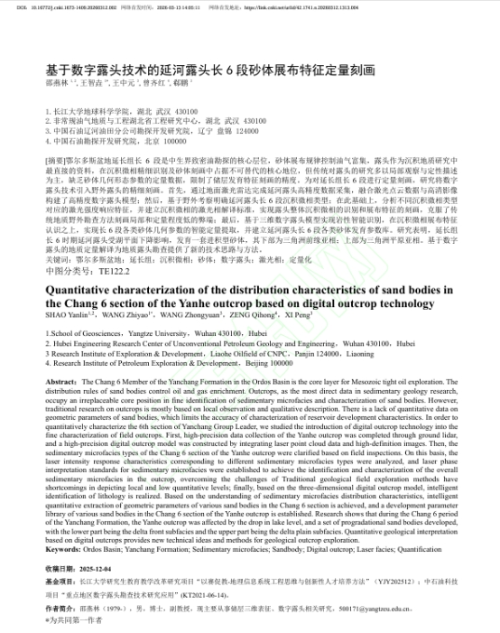 yl7703永利集团硕士研究生王智垚在《yl7703永利集团学报(自然科学版)》发表题为“基于数字露头技术的延河露头长6段砂体展布特征定量刻画”的研究论文。